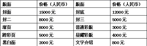 请柬:8000元∕万张,拱门:8000元∕展期,入场劵:8000元∕2万张, 参展证、参观证背面独家广告1万元。